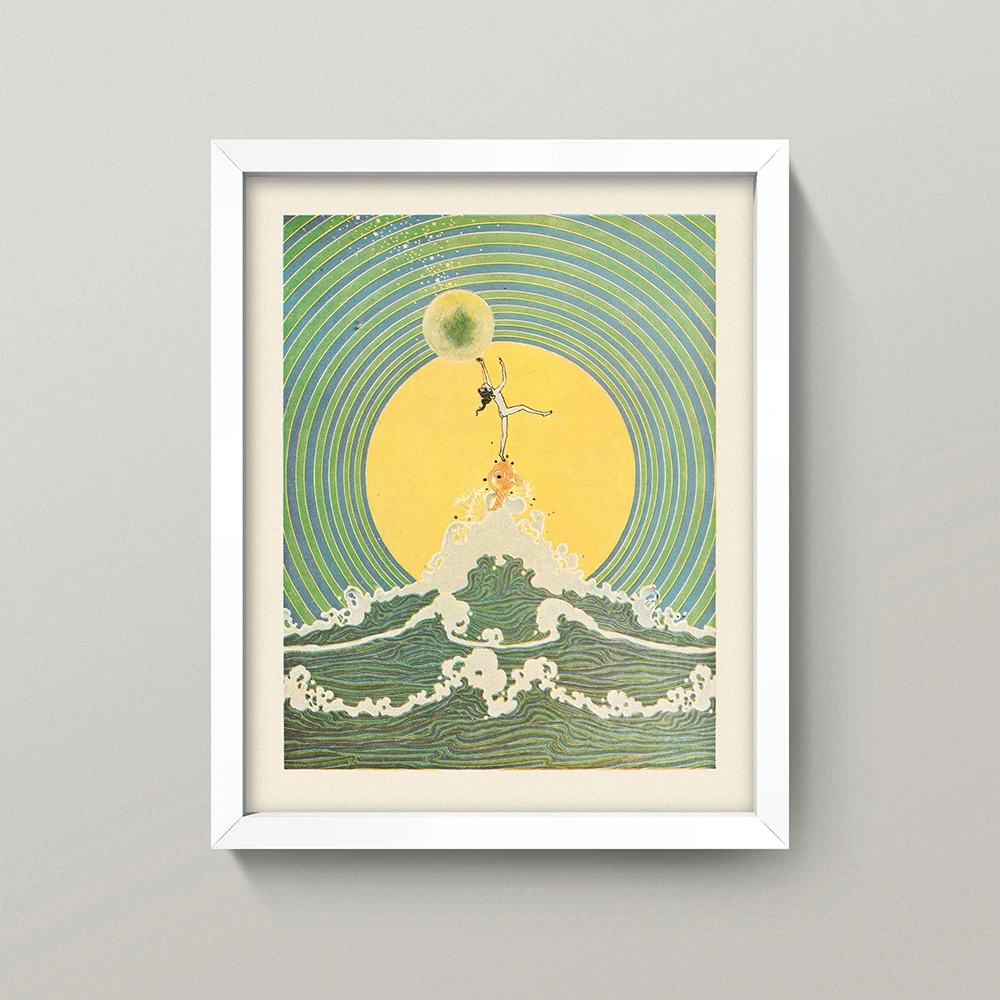 Принты Reach for the Moon, детский плакат, винтажный, солнце, движение, волна, морская рыба, волшебная, причудливая Настенная картина на холсте, настенное украшение