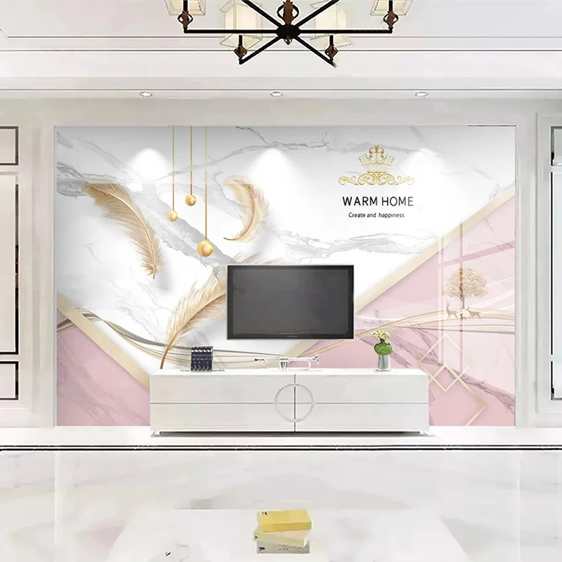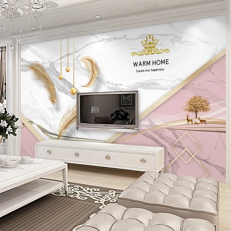 Фотообои на заказ 3D абстрактная Современная Художественная настенная живопись розовый мрамор Золотое перо домашний Декор бумаги Papel де Parede Sala