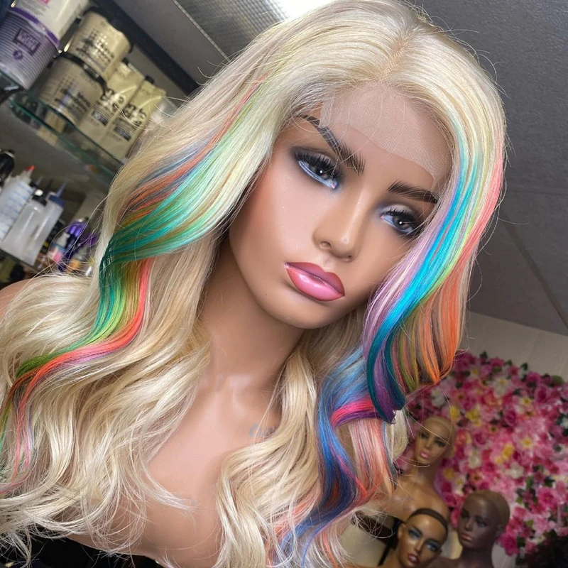 Парики из парик цвета радуги натуральных светлых волос, Hd, прозрачные, 613 цвета
