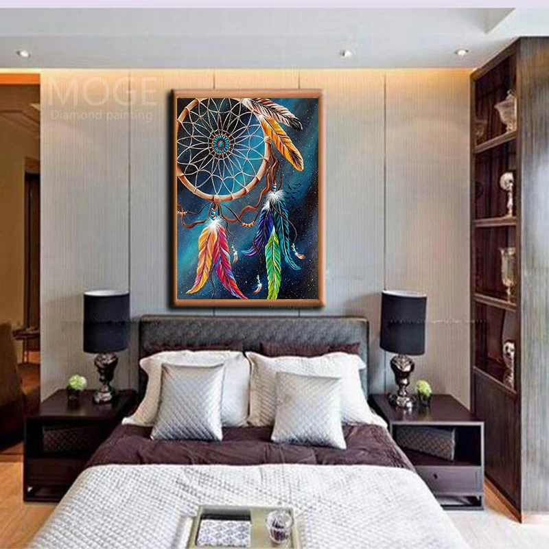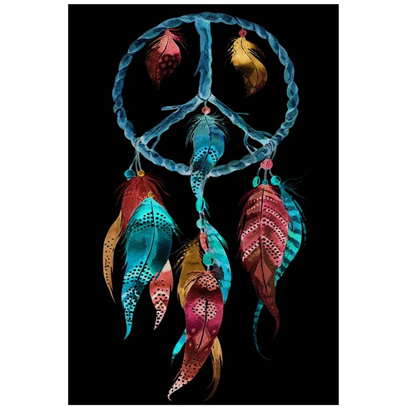 Алмазная вышивка Ловец снов, Ловец снов в богемном стиле, с перьями, вышивка крестиком, мозаика