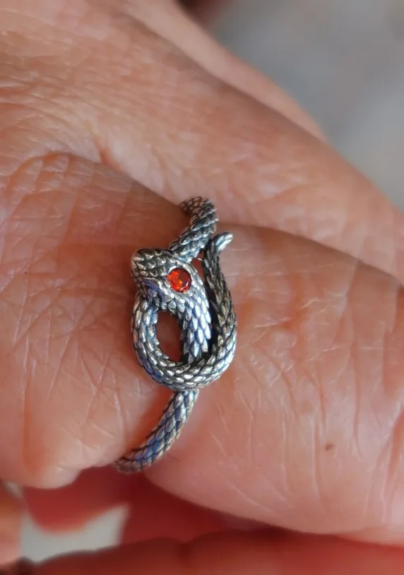 Кольцо женское из серебра 925 пробы, с изображением темной змеи