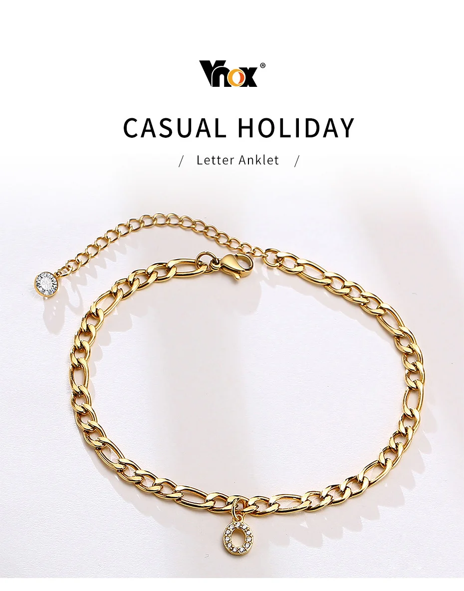 Женский браслет на лодыжку Vnox Bling A-Z Initial, цепочка из нержавеющей стали твердого золотого цвета с буквами алфавита