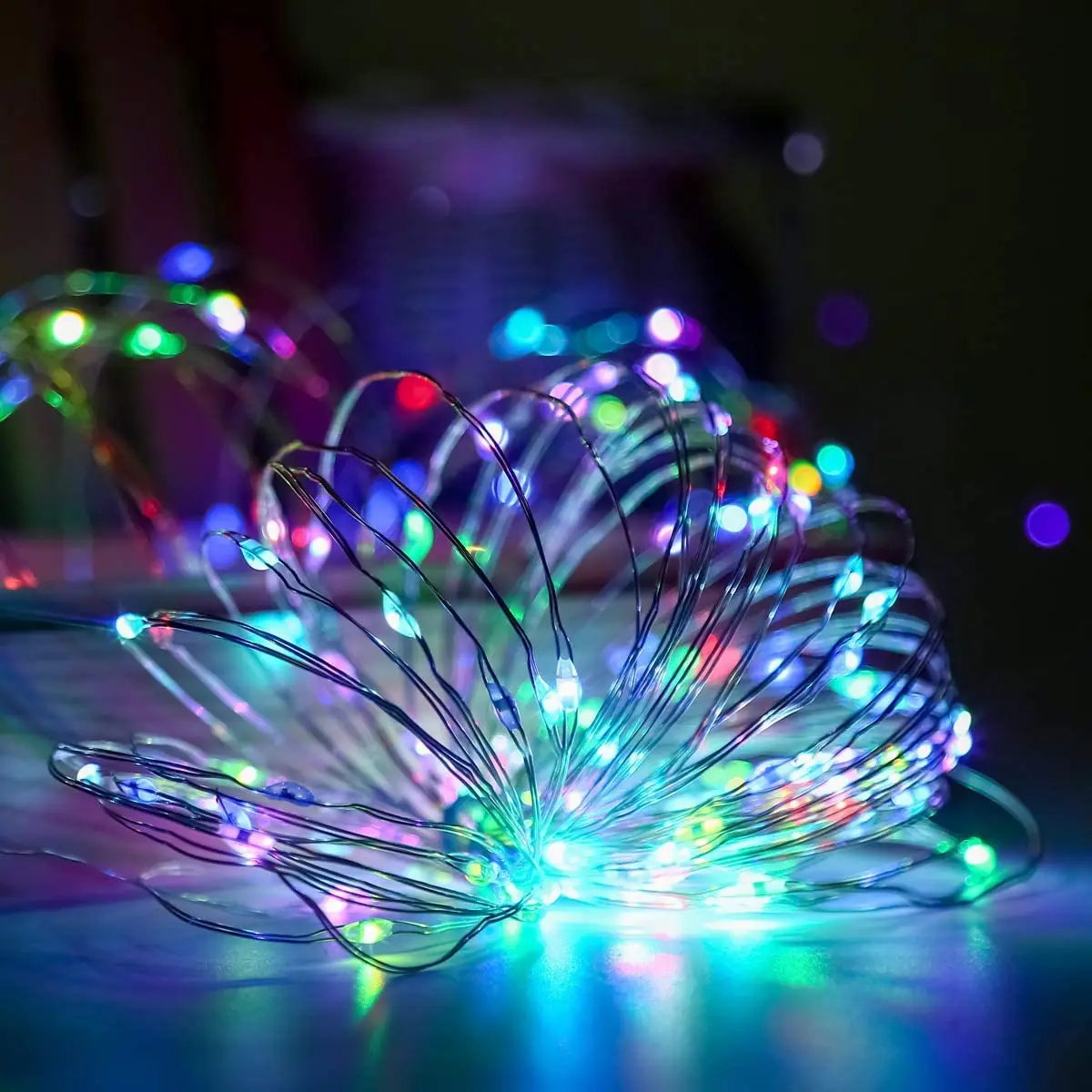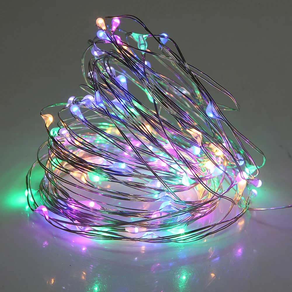 Широко используется: Этот светильник с серебряной проволокой легко сгибается и формируется, создает радостную и праздничную атмосферу, чтобы отрегулировать светильник на Рождество, праздник или свадьбу. Мерцающий светильник водонепроницаемый, идеально подходит для внутреннего и наружного декора