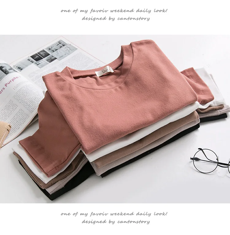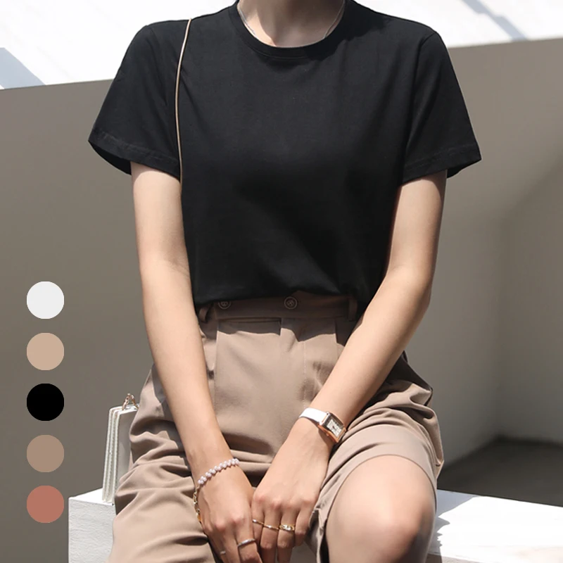 Женские топы, Однотонная футболка из чистого хлопка для женщин, лет...