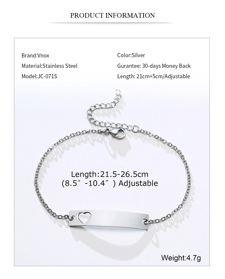 Vnox Персонализированная гравировка ID бар с сердечком цепи браслет...