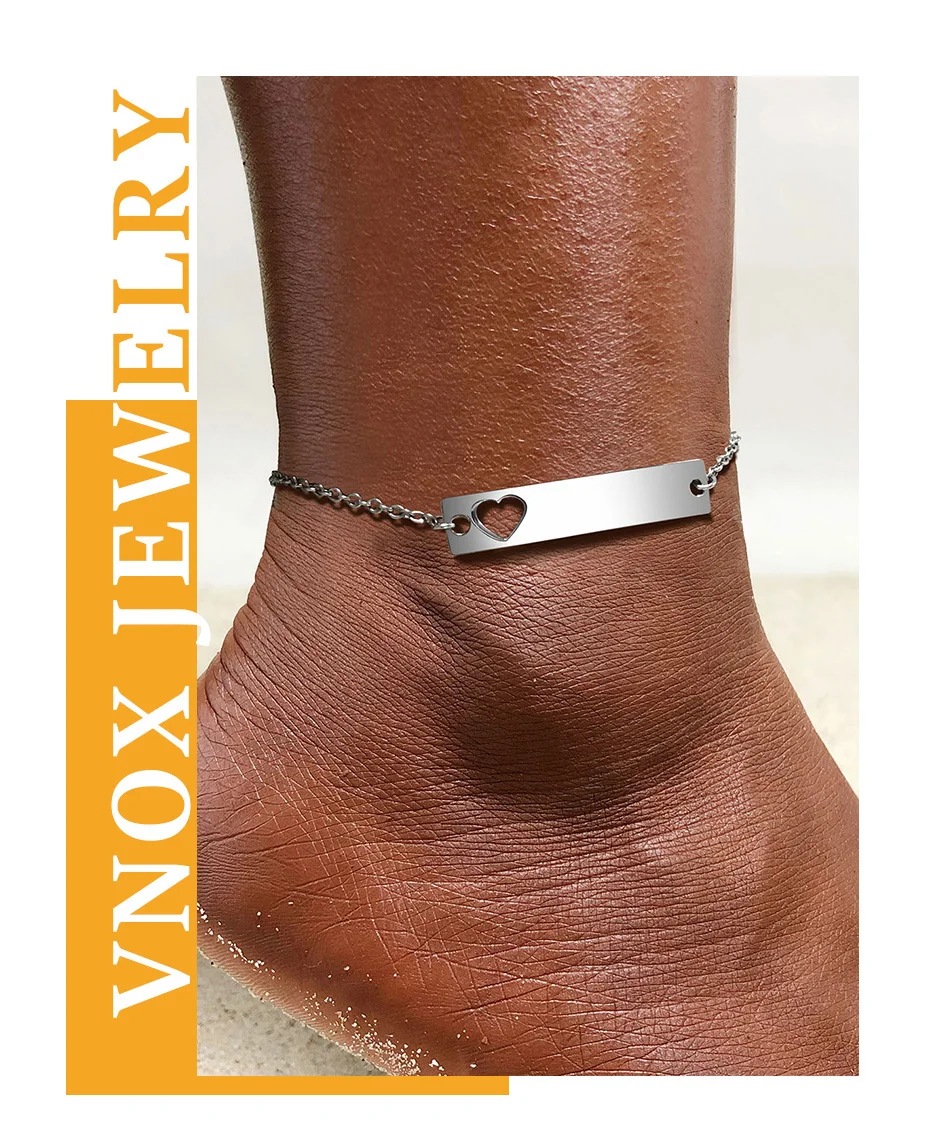 Браслет на лодыжку с гравировкой Vnox, для женщин и мужчин, Летний Пляжный, праздничный, с сердцем, регулируемая длина