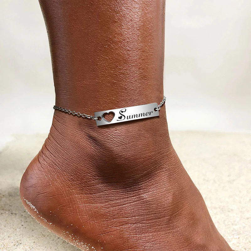 Браслет на лодыжку женский из нержавеющей стали с гравировкой на заказ