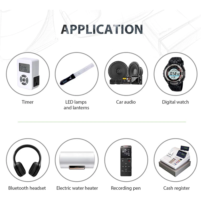 Application:Clocks, Watches, Calculators, Computers, Cameras