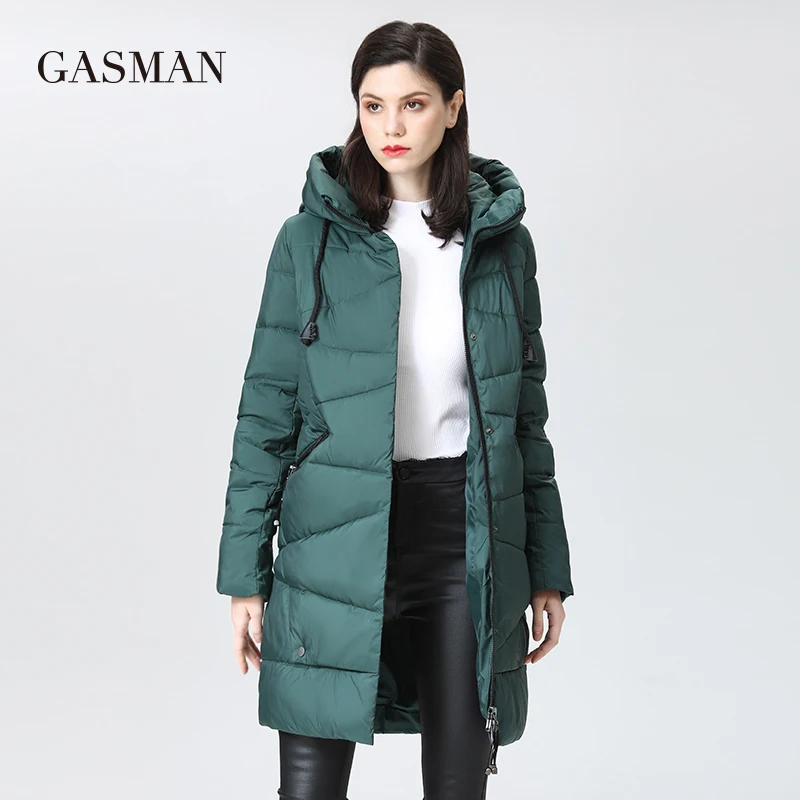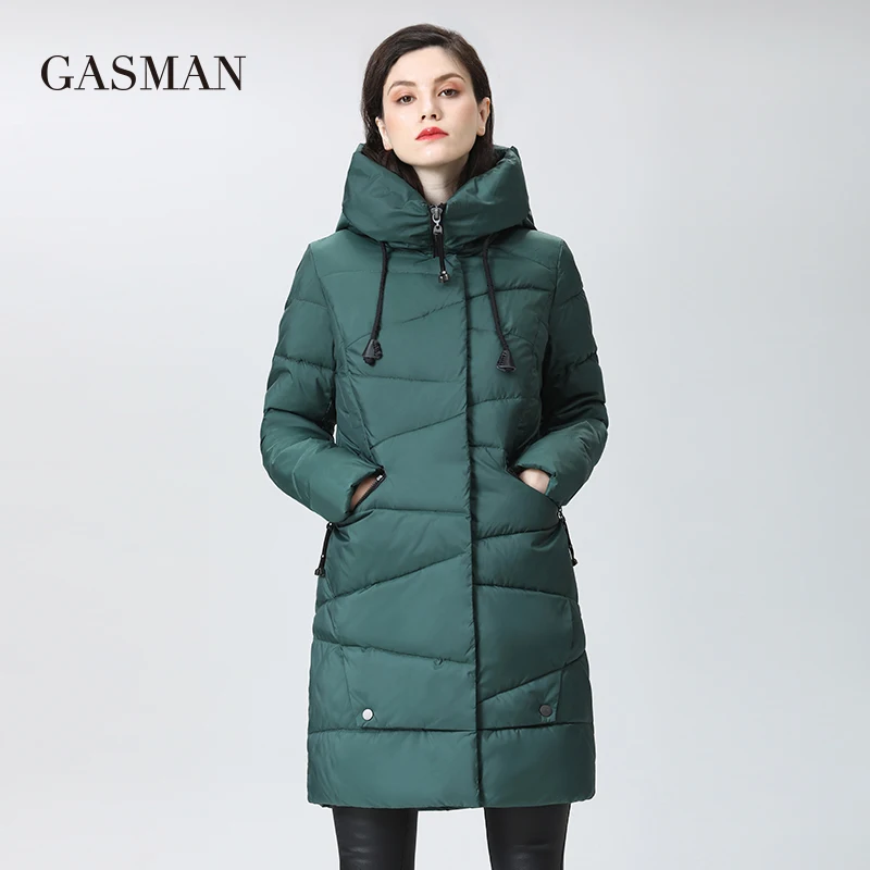 GASMAN женские зимние пальто 2021 Модная брендовая пуховая куртка на молнии Длинная женская верхняя одежда с капюшоном ветрозащитное теплое Женское пальто 17088