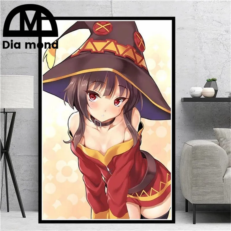 Алмазная живопись сделай сам Konosuba Megumin, полная вышивка, вышивка крестиком, милая девушка, японское аниме, мозаика, искусство, домашний декор