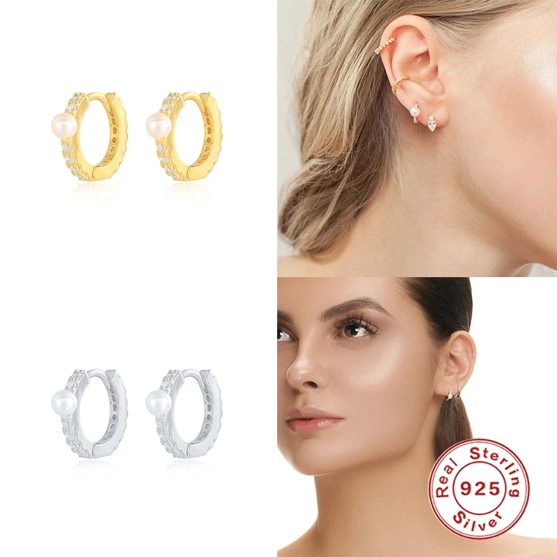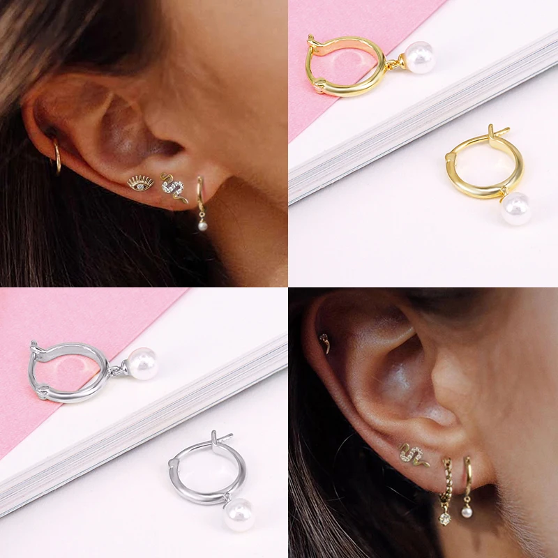 Серьги-кольца женские из серебра 2021 пробы с жемчугом, 925