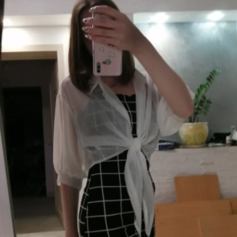 Популярная тонкая Солнцезащитная рубашка, женские рубашки шифоновые...