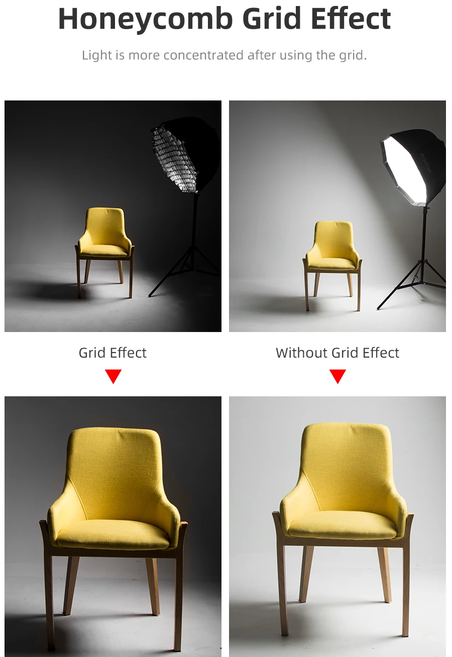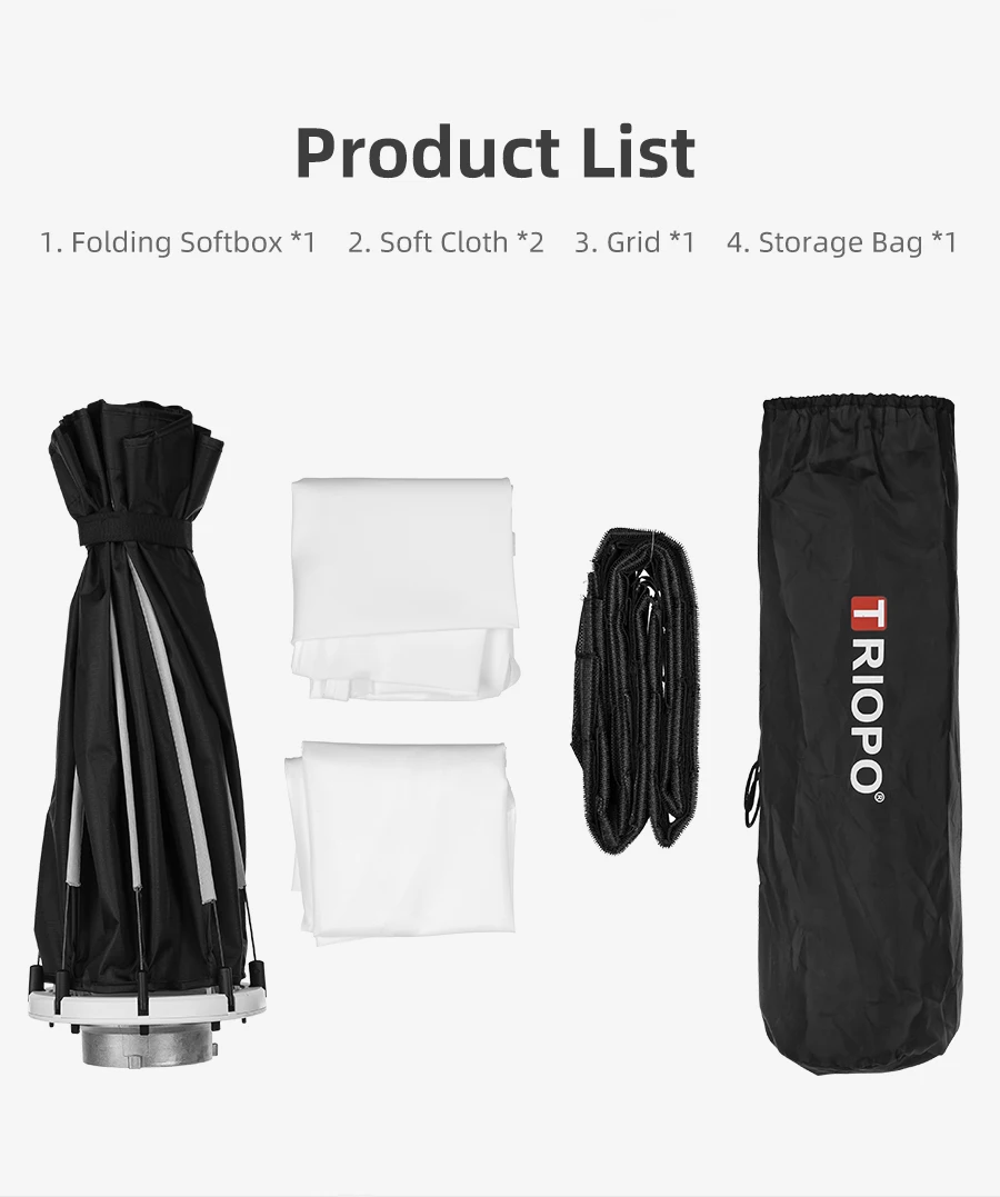 Nota: El Portabrocas de esta softbox ahora se ha actualizado a negro, no al blanco en la imagen