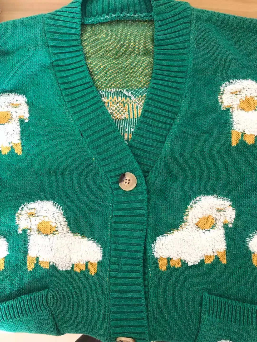 Очень классный кардиган. Но овечки не такие обьемные как на фото