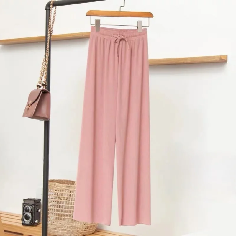 Женские брюки из ледяного шелка, женские летние свободные прямые брюки