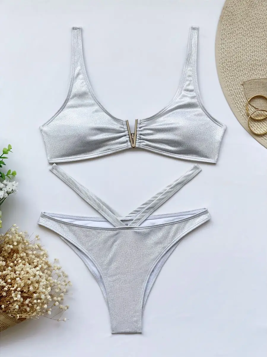 Женский купальник бикини 2021 комплект бикини пуш-ап купальники с высокой талией женские сверкающие купальные костюмы купальный костюм бикини