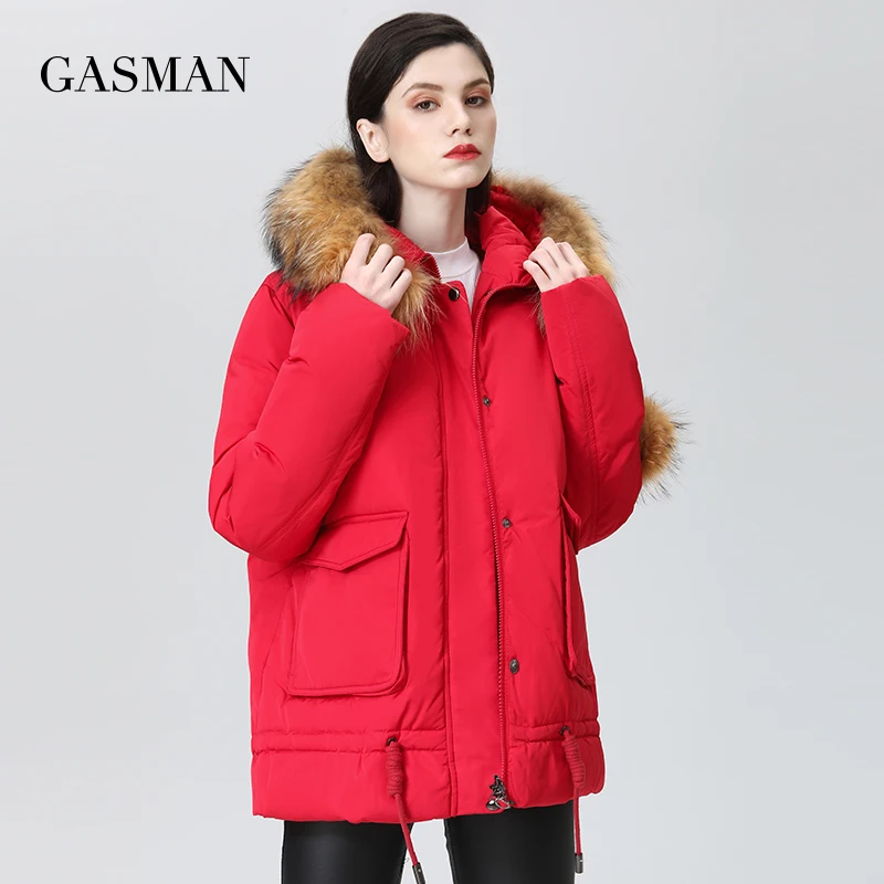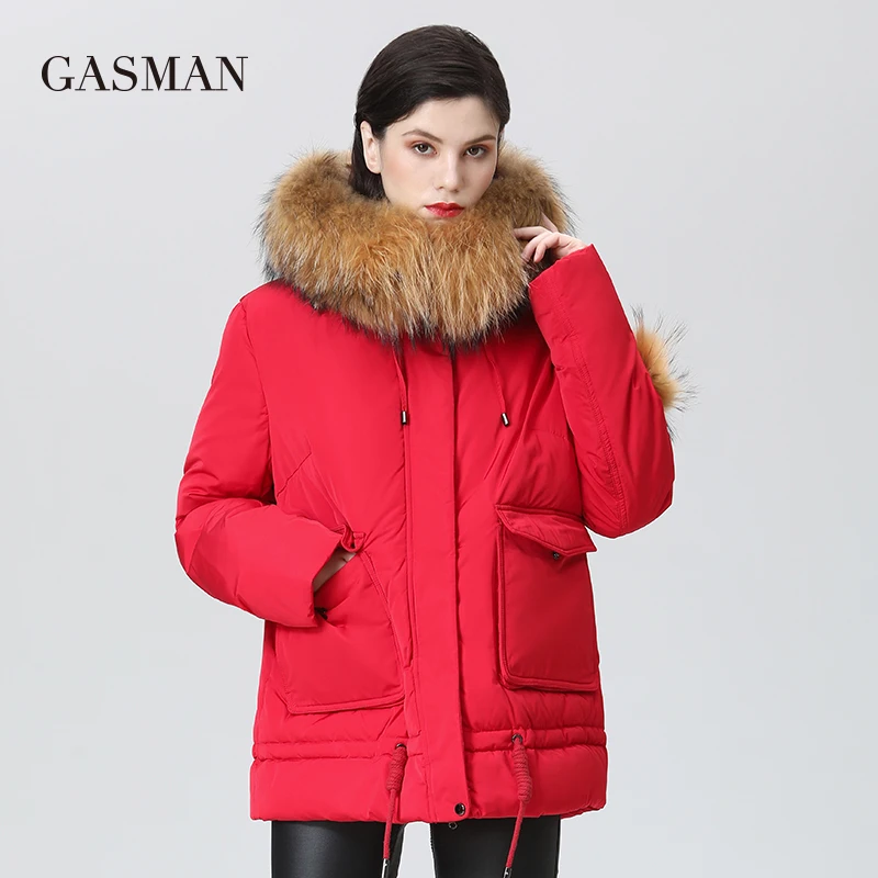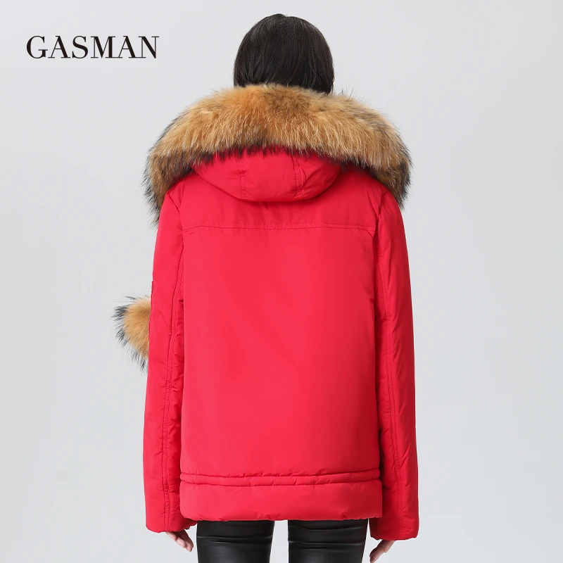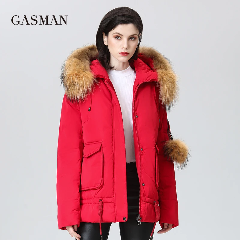 GASMAN женские зимние пальто 2021 красная Короткая Меховая пуховая куртка с помпоном на молнии Модная парка с карманами повседневное женское пальто 17235