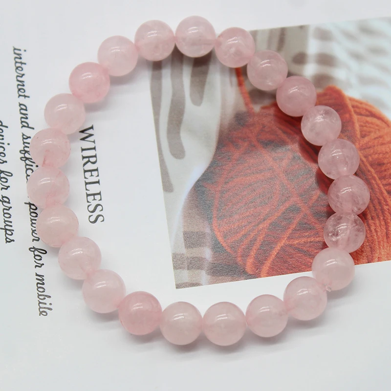 Оптовая продажа, браслет из натурального камня, розового цвета, стретч-браслет, Кристальный кварцевый эластичный шнур для влюбленных, женский подарок, пуловер, ювелирные изделия, бусины