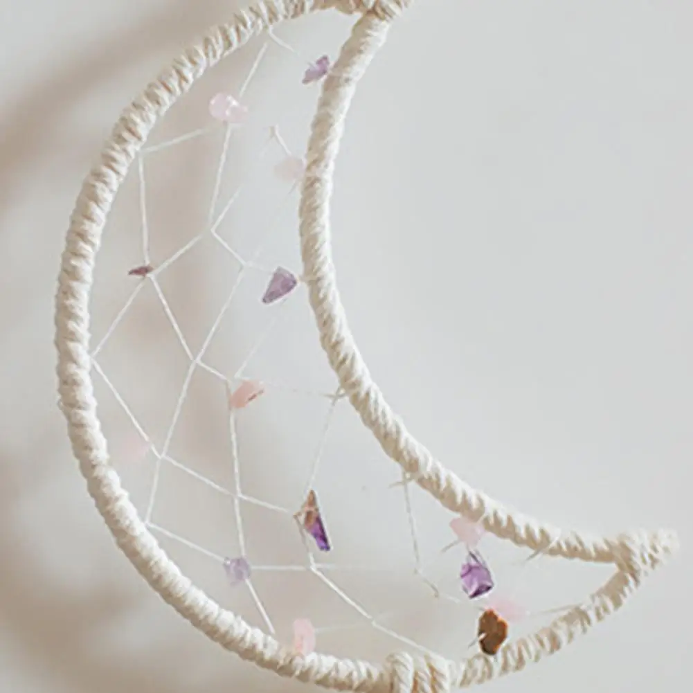 Настенная подвеска-макраме, хлопковая веревка ручной работы, богемный настенный кулон в виде Луны для украшения свадьбы