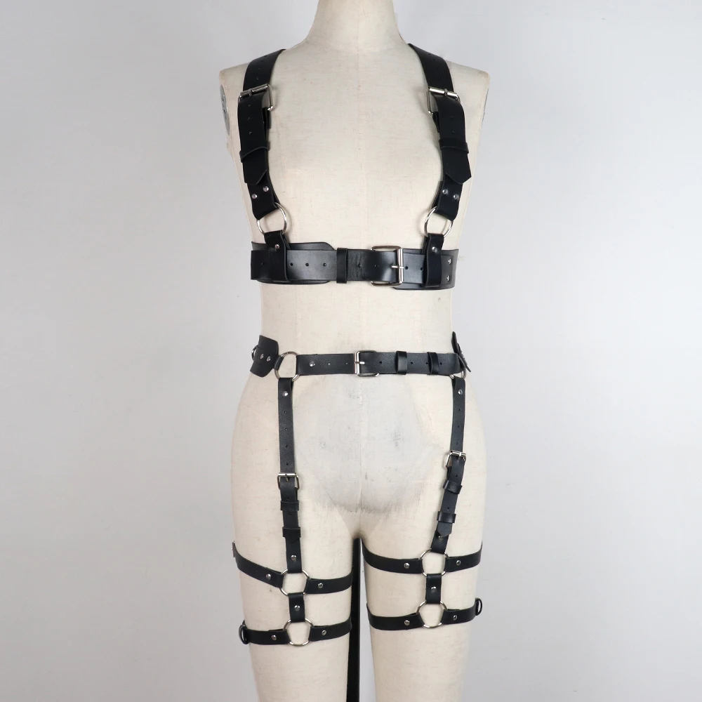 нижнее белье женское портупея женская Модный трендовый Женский комплект из двух предметов в готическом стиле, подвязки из искусственной кожи с металлическим уплотнительным кольцом, регулируемые бондажные ремни