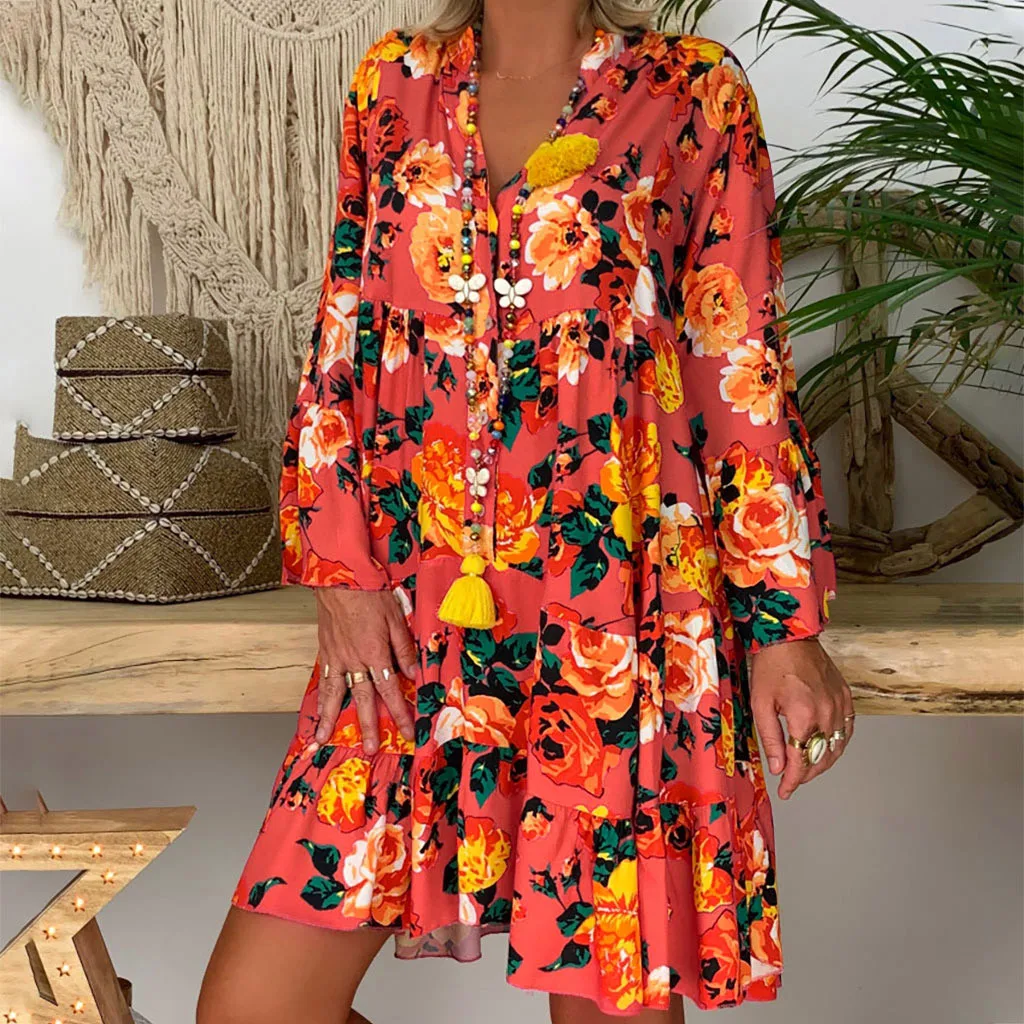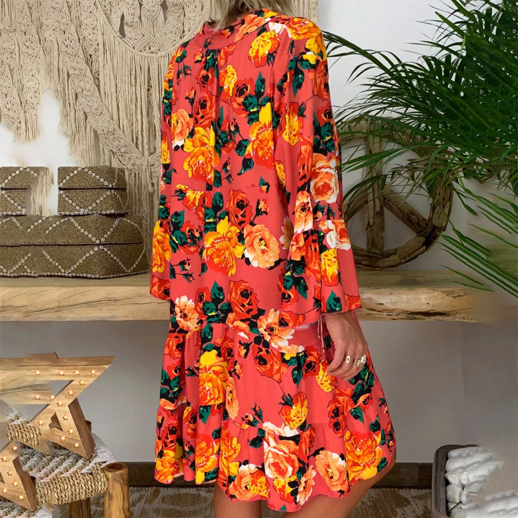 Модное женское повседневное разноцветное платье, женское свободное платье с цветочным принтом и рукавами три четверти, мини-платье, летнее платье A40