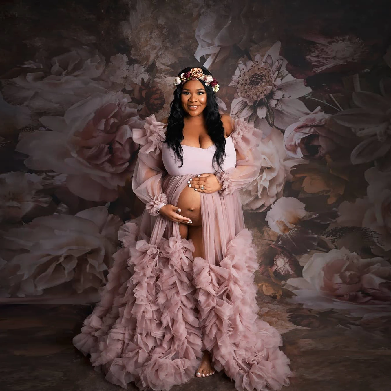 Очень Пышное Тюлевое платье для беременных для фотосъемки с оборкам...