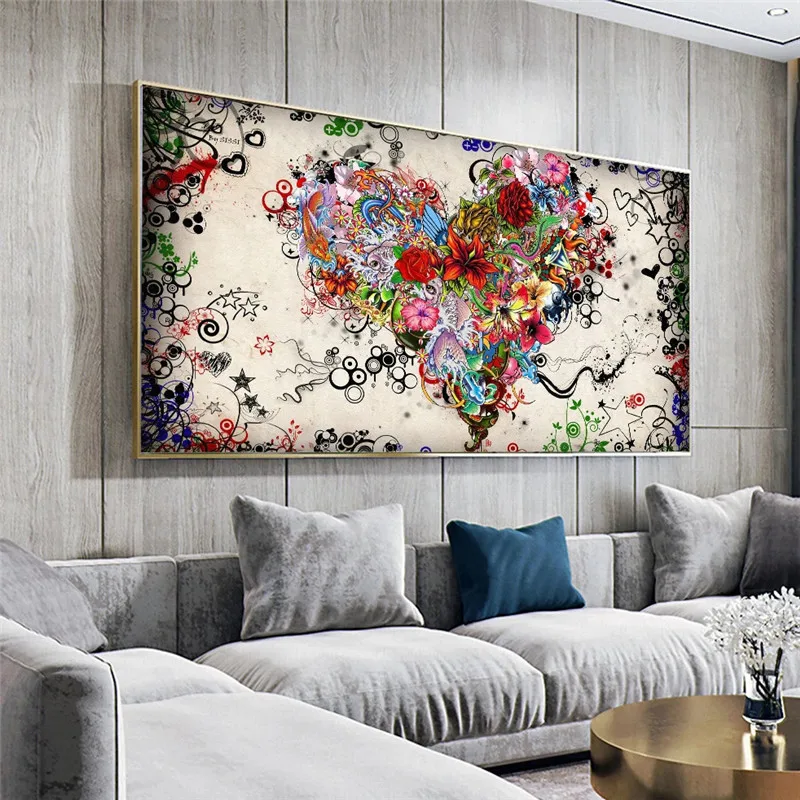 Плакаты на холсте с изображением сердца, цветов и девушки, Настенная картина, картина с любовью, абстрактная Красочная картина с сердцем для гостиной, домашний декор