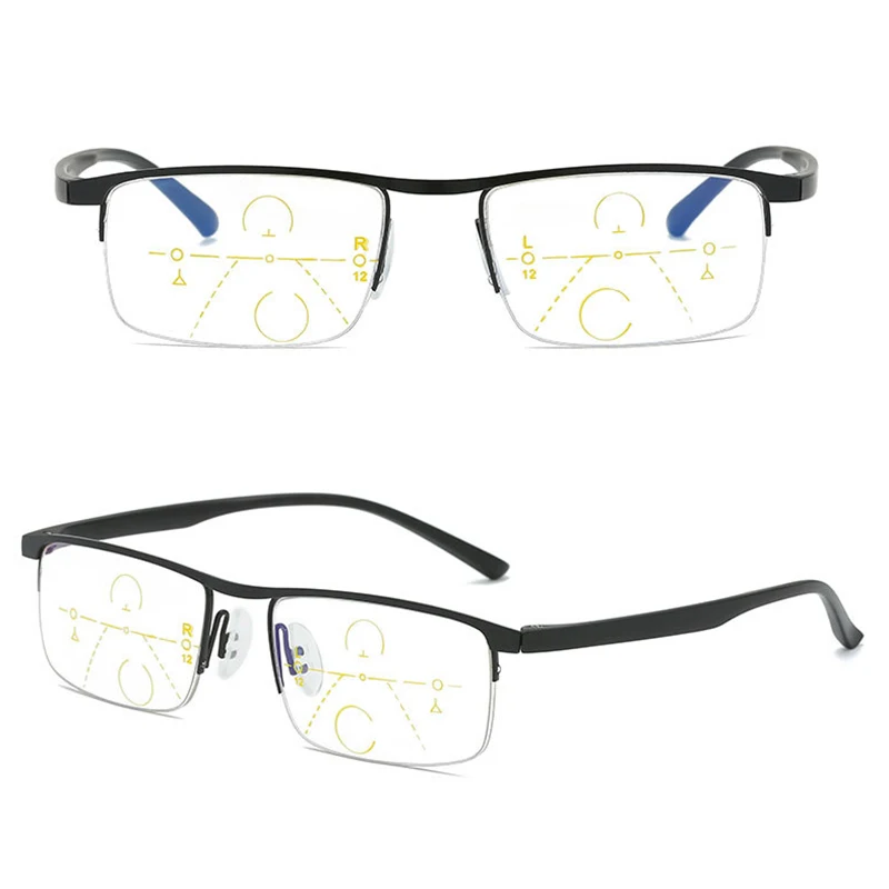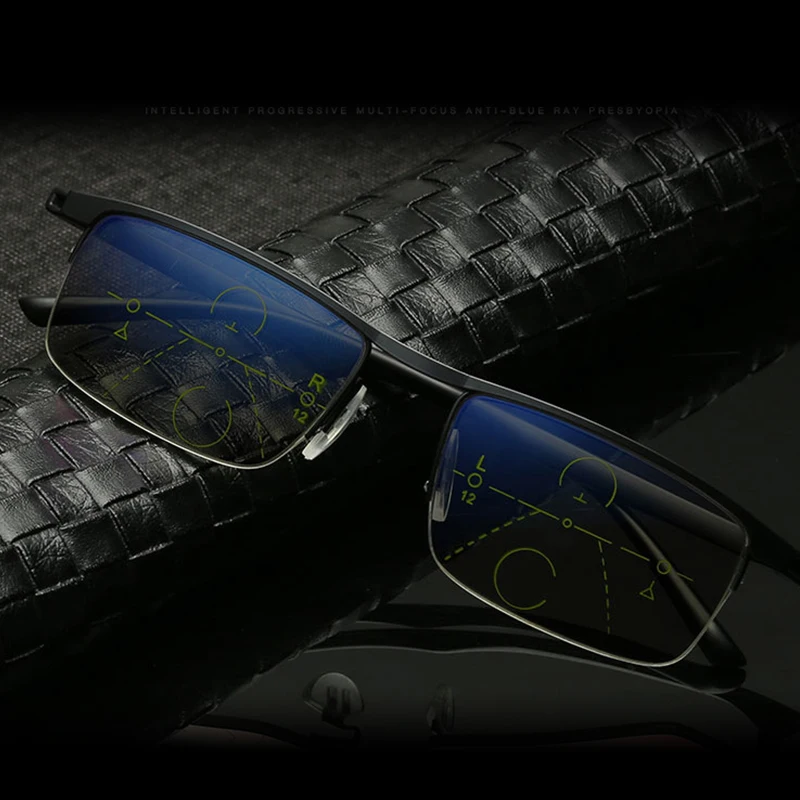 Многофокальные прогрессивные очки для чтения для мужчин и женщин, пресбиопические с защитой от синего излучения и автоматической регулировкой в полуоправе, для мужчин и женщин
