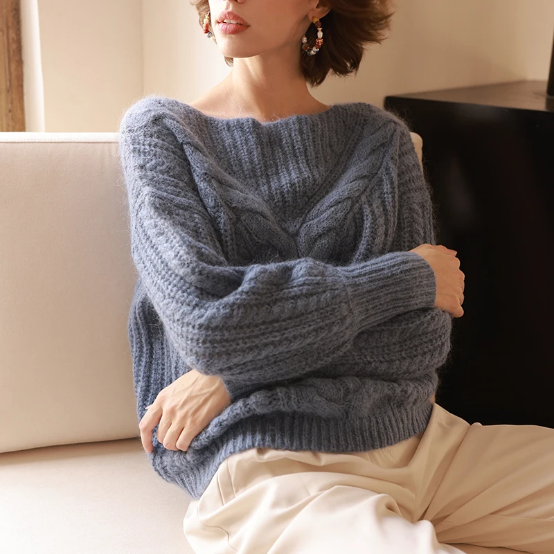 Косичка мохеровый вязаный свитер женский осенний шикарный пуловер с длинным рукавом женская зимняя одежда винтажные повседневные свитеры джемпер 2022