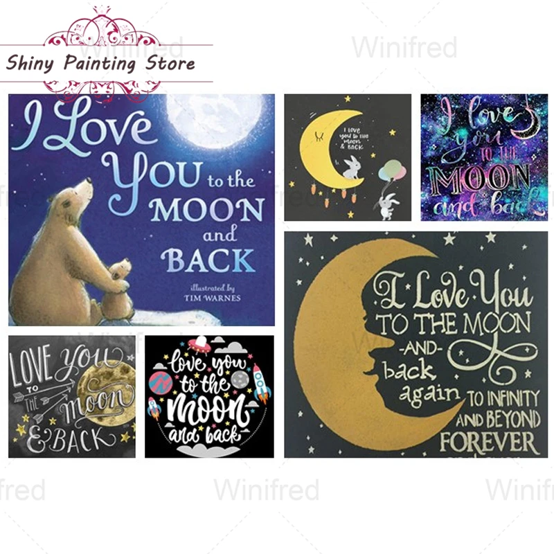 Алмазная живопись 5D "Я люблю тебя до Луны и обратно", цитаты, алмазная вышивка, настенное искусство, украшение для дома, ручная работа, подарок для детей