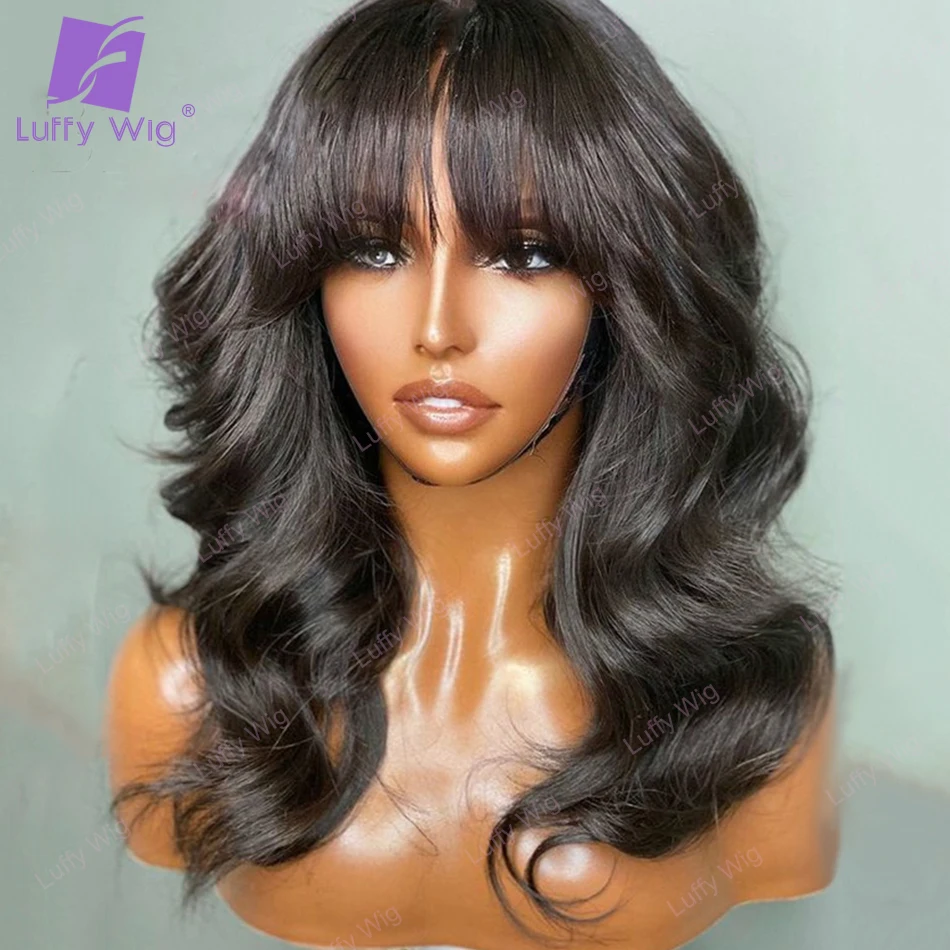 Парики из человеческих волос с челкой Luffywig, 180% плотности