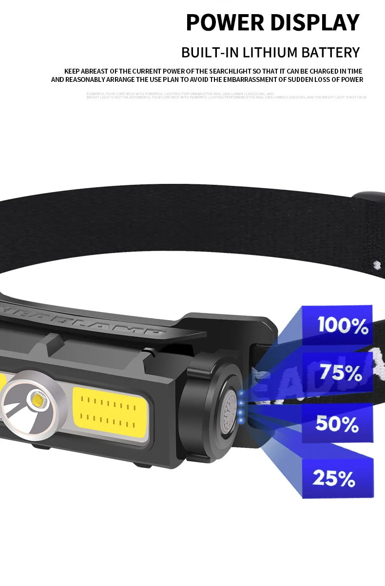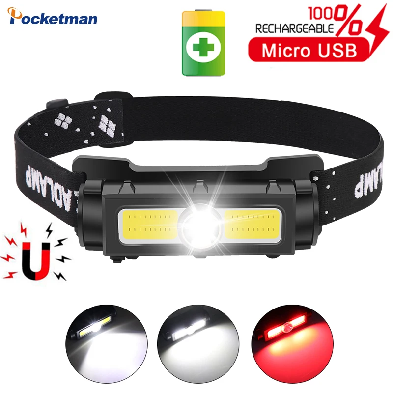 Мощный налобный фонарь с USB-зарядкой, водонепроницаемый Головной фонарь с магнитом, красный предупреждающий фонарь, светильник для кемпинга и рыбалки