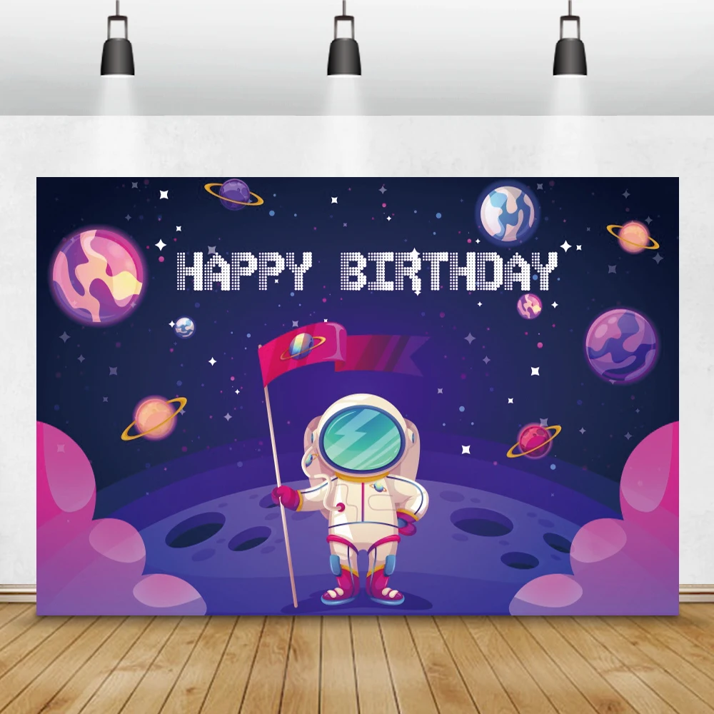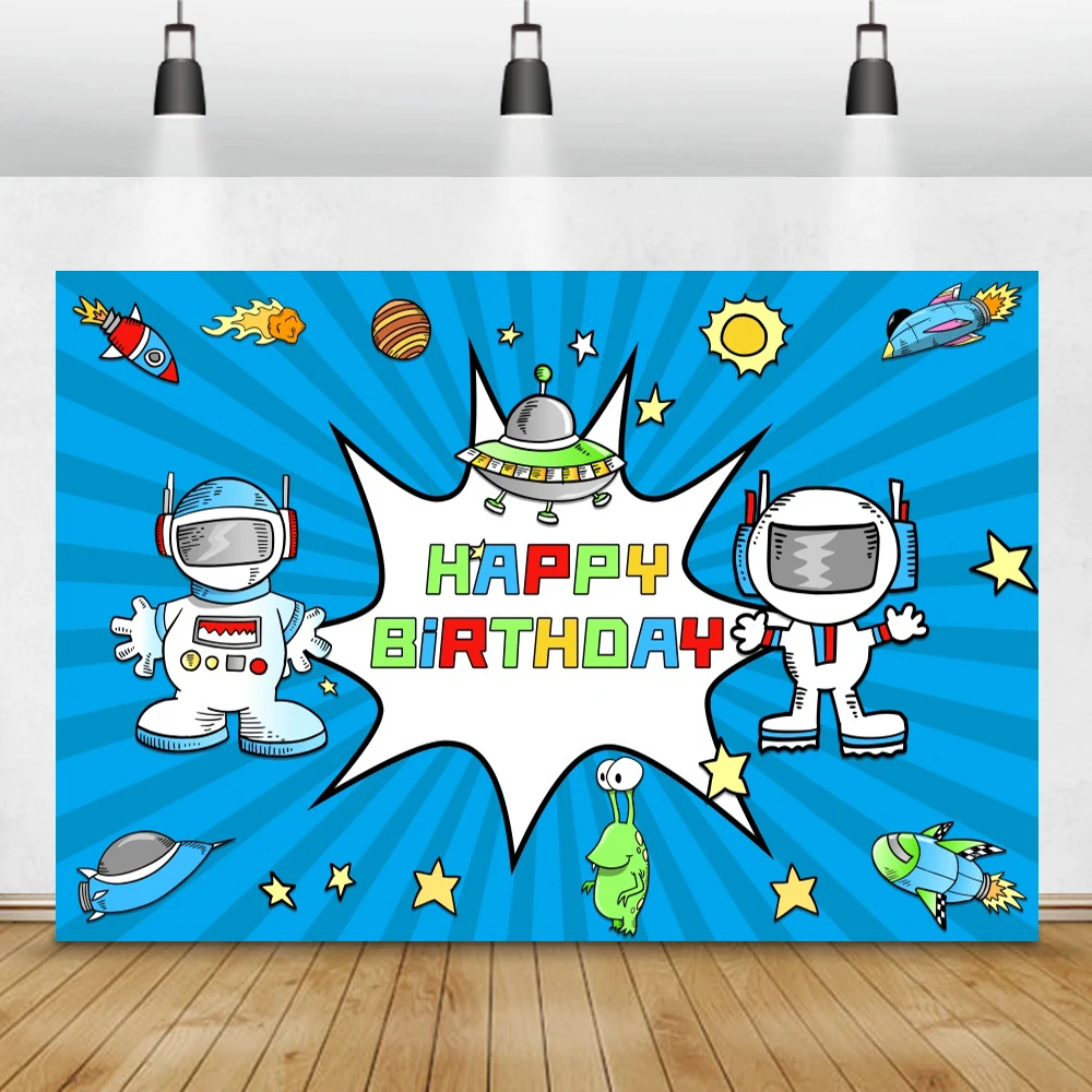 Фотофоны Laeacco с изображением астронавта из мультфильма планеты голубого звездного неба космической станции детский день рождения фотографические фоны