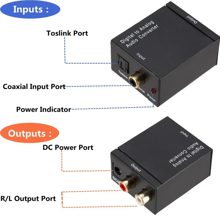Цифро-аналоговый аудио преобразователь Цифровой оптический коаксиальный Toslink в аналоговый RCA LR аудио преобразователь адаптер Усилитель