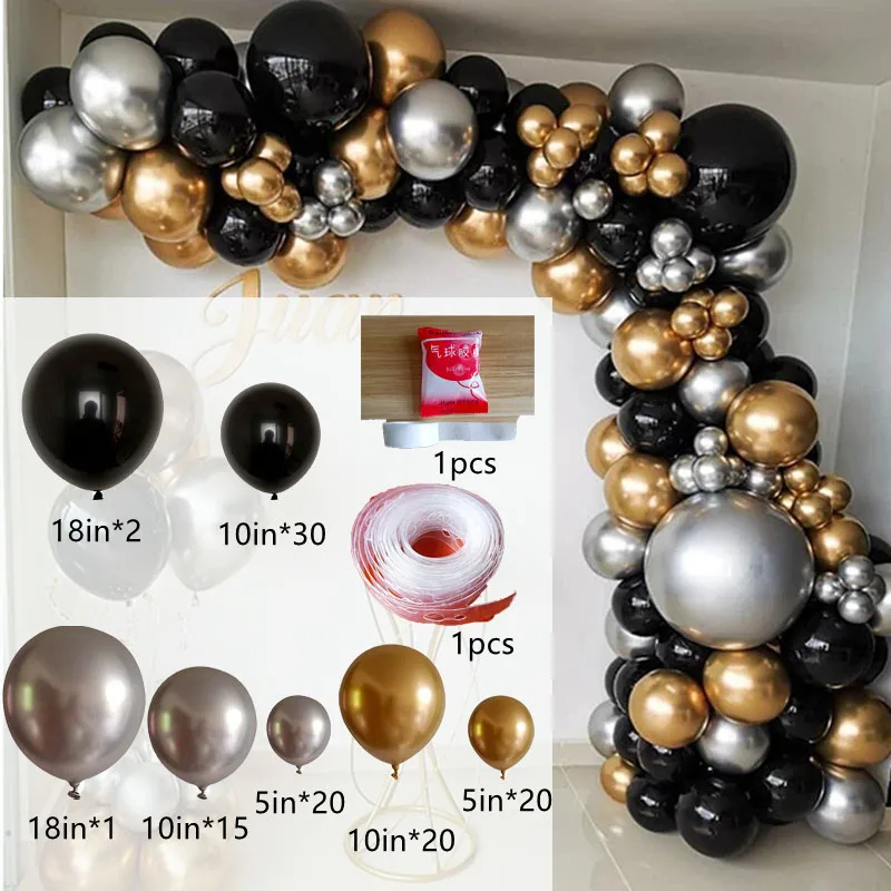 110 шт., хромированные серебряные и золотые воздушные шары