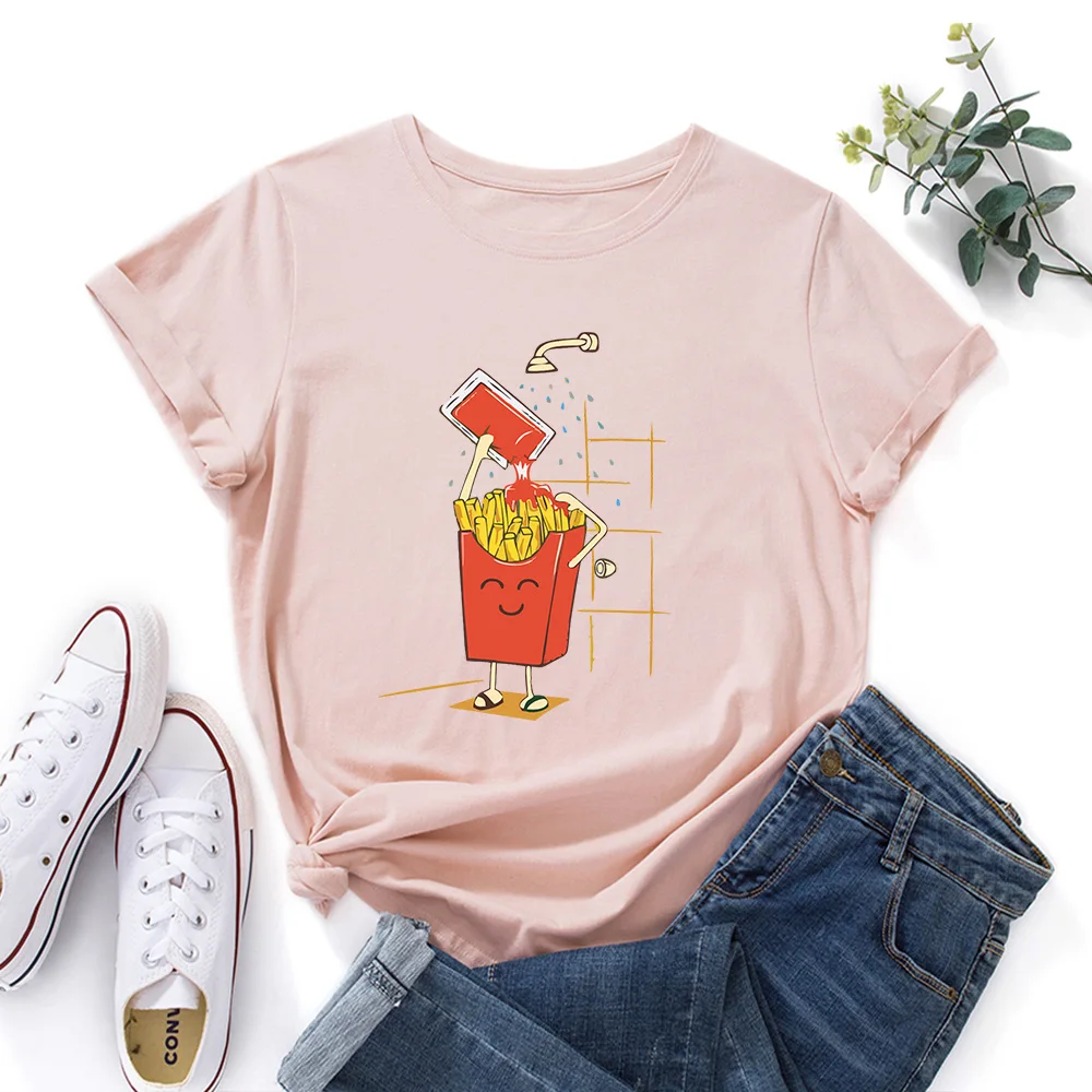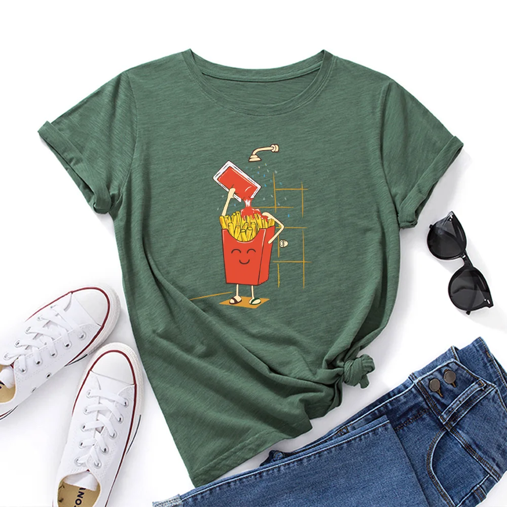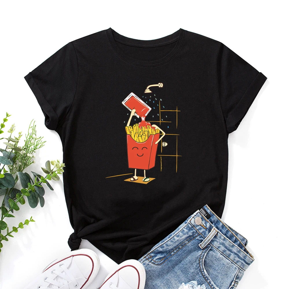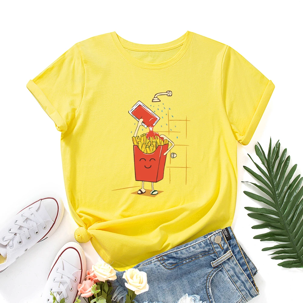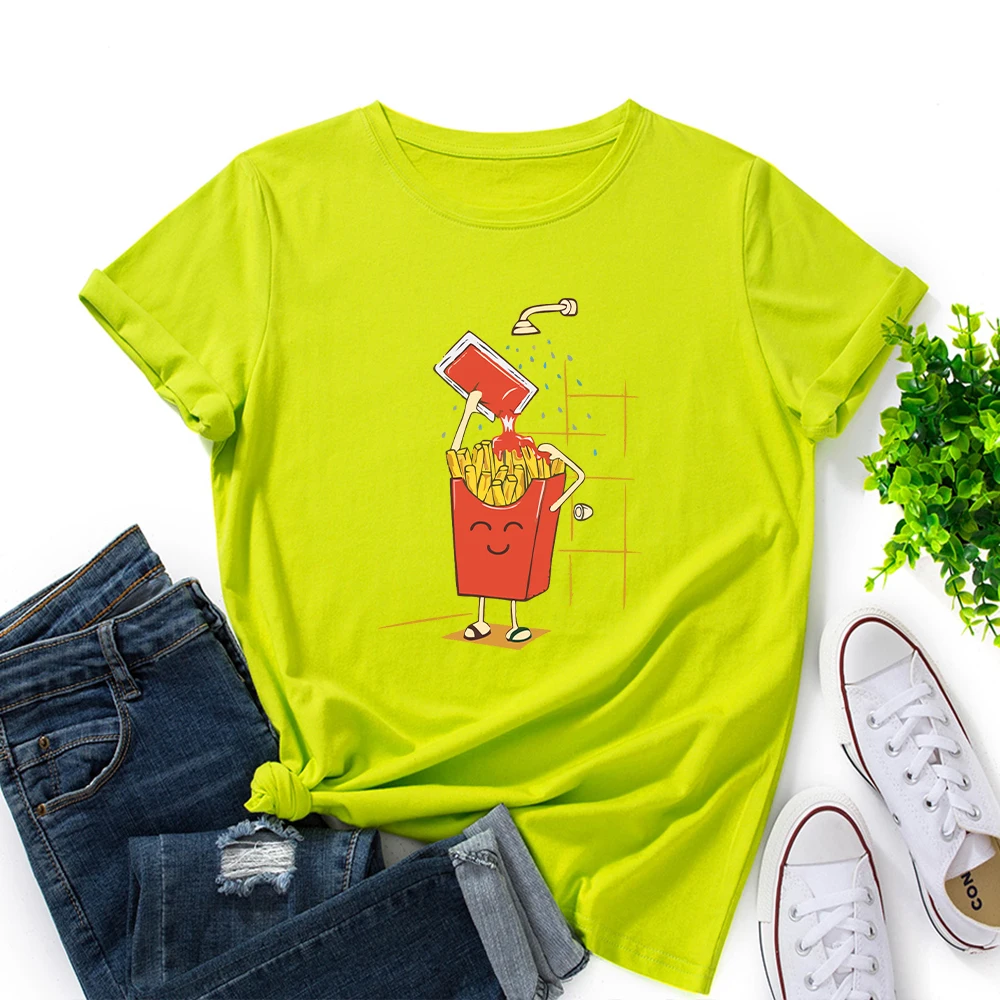Женская футболка с рисунком фри, Повседневная хлопковая футболка с круглым вырезом и коротким рукавом, летний топ с графическим принтом