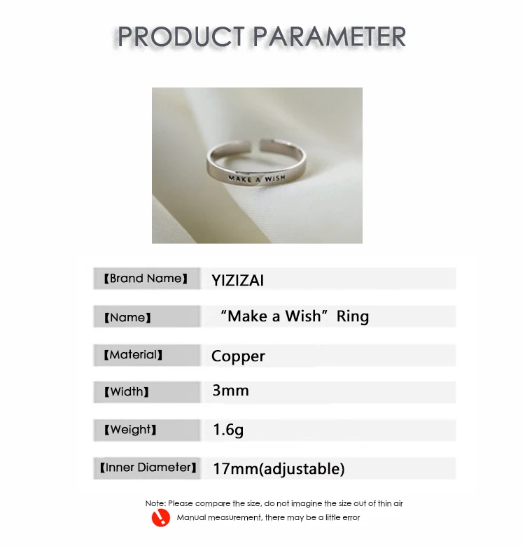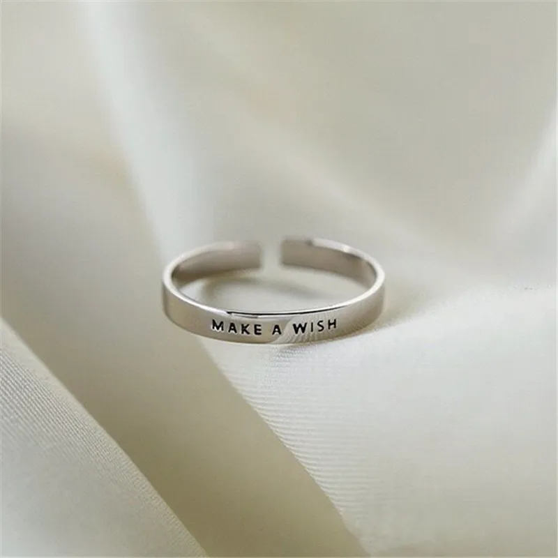 YIZIZAI, простое матовое кольцо с надписью Make A Wish для женщин и мужчин, креативное Открытое кольцо в ретро стиле серебристого цвета для пальцев, искусственные подарки