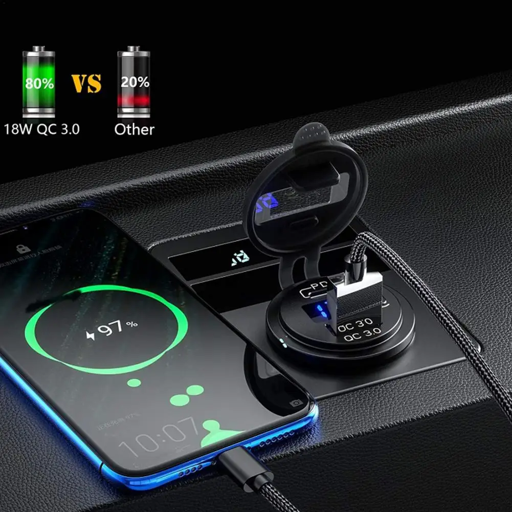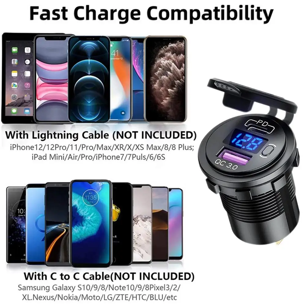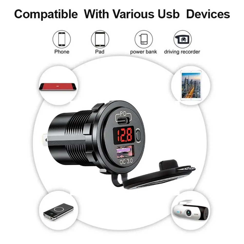 Водонепроницаемое зарядное устройство 30 Вт PD Type CQC 3,0 USB 12 В 24 В с переключателем розетка адаптер питания для автомобиля грузовика лодки RV мотоцикла