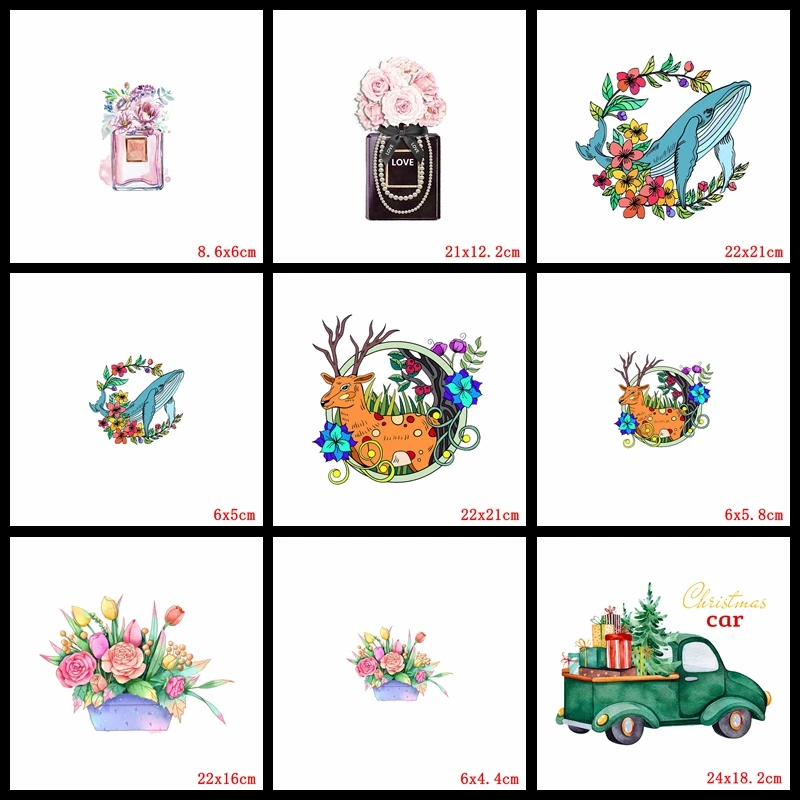 Модные парфюмерные Цветочные автомобильные термонаклейки, термотрансферные термонаклейки, термонаклейки, термонаклейки для женской одежды, мультяшная аппликация