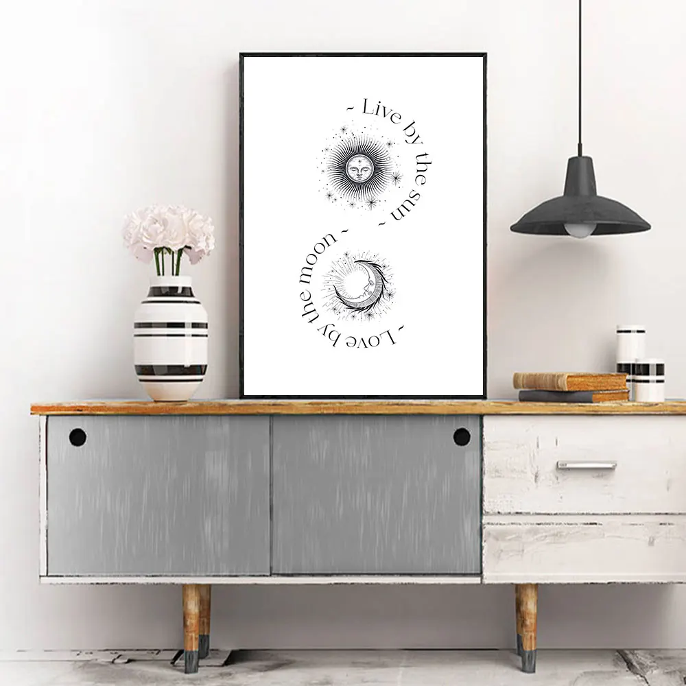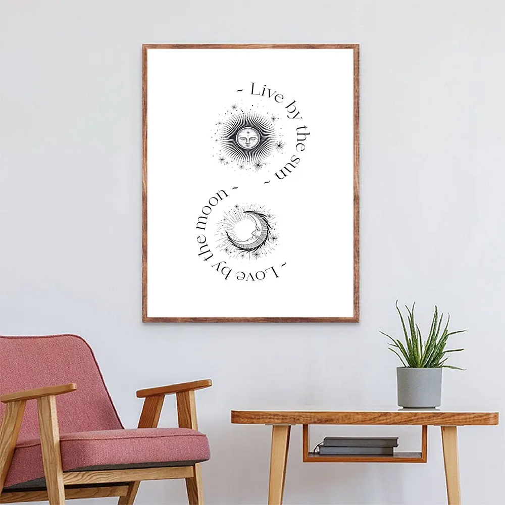 Абстрактный модный постер в стиле бохо с изображением Солнца и Луны, Скандинавская Картина на холсте, Художественная печать, Современная Настенная картина для гостиной, домашний декор