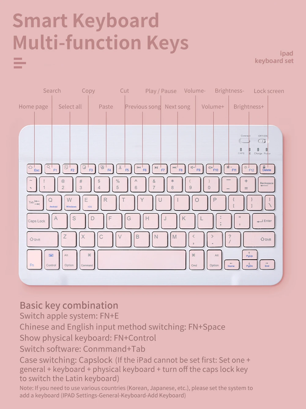 Bluetooth-клавиатура для iPad Teclado, беспроводная клавиатура и мышь для Xiaomi, Samsung, Huawei, планшетов, телефонов Android, IOS, Windows