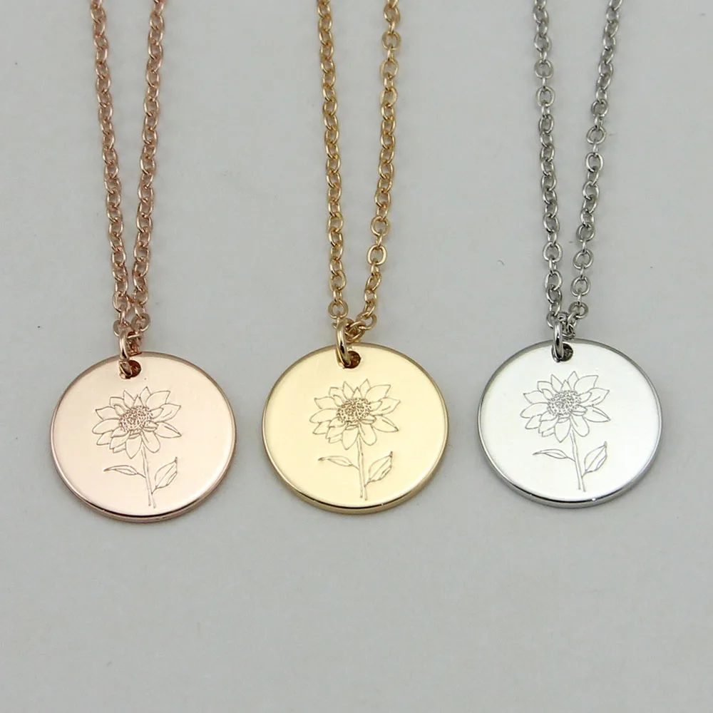 Ювелирные изделия для девушки, подвески с изящными дисками с гравировкой в виде рождения и цветка