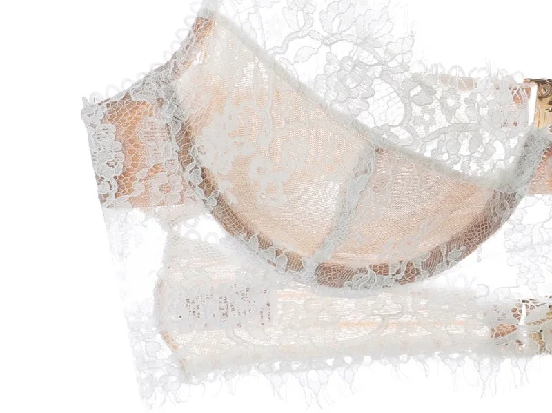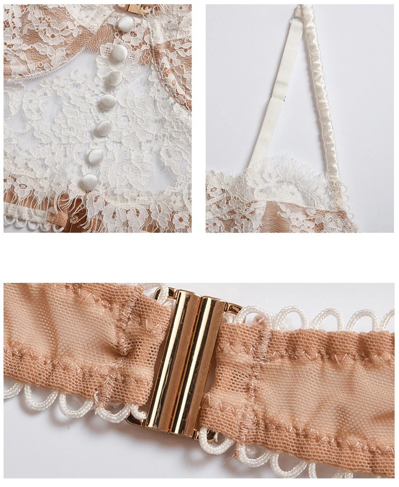 Нижнее белье женское ультратонкое, французское пикантное кружевное нижнее белье на косточках, пуш-ап, бюстгальтер на пуговицах с цветочной вышивкой