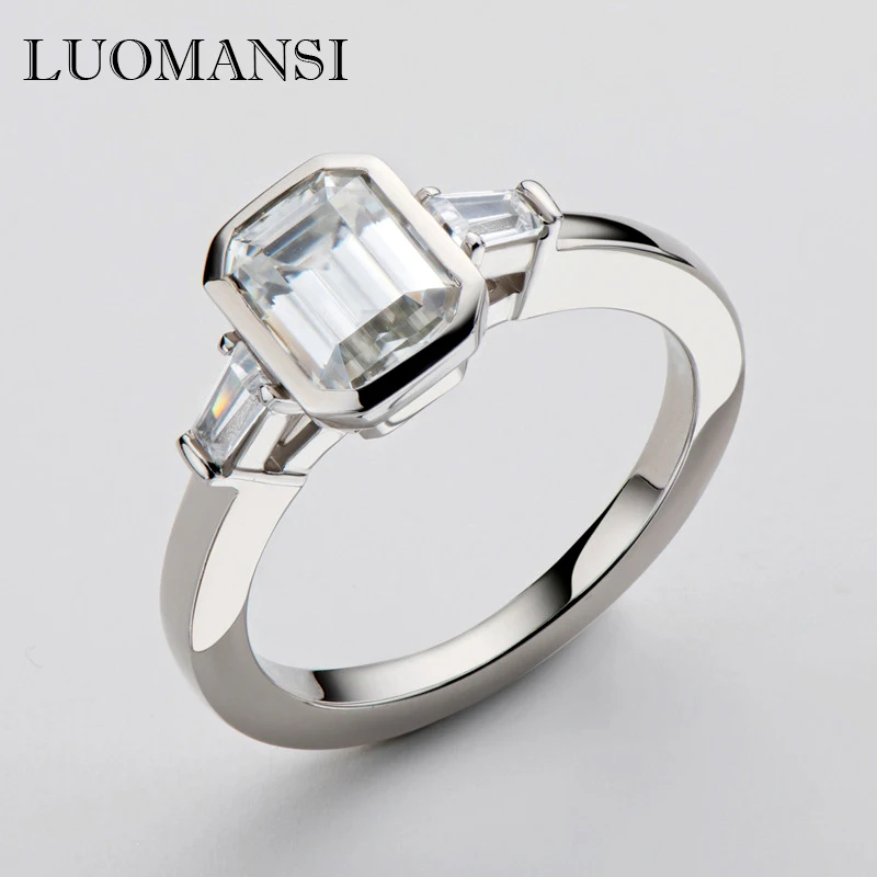 Luomansi 6*8 мм 2 карата D цветное прямоугольное муассанитовое кольцо прошедшее испытание бриллиантом S925 Стерлинговое Серебро Свадебная вечеринка женские ювелирные изделия