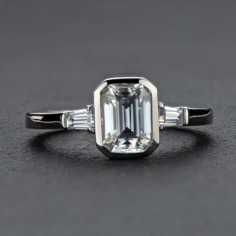 Кольцо драгоценный камень: 6*8 мм 2CT D Цвет прямоугольный моиссанит (прошел испытание алмаза + сертификат)