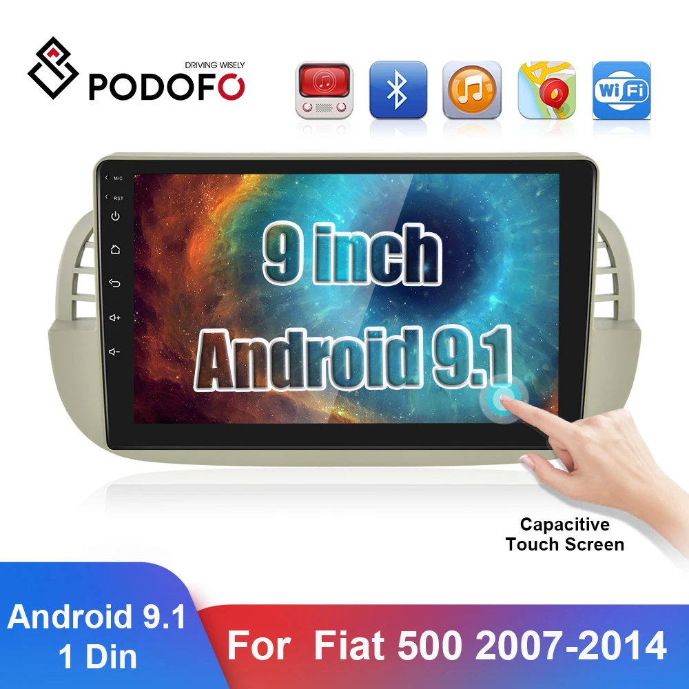 Автомагнитола Podofo, 2 Din, Android, для Fiat 500 2007-2014, автомобильный мультимедийный плеер 9 дюймов, GPS, RDS, Bluetooth, управление рулевым колесом, стерео