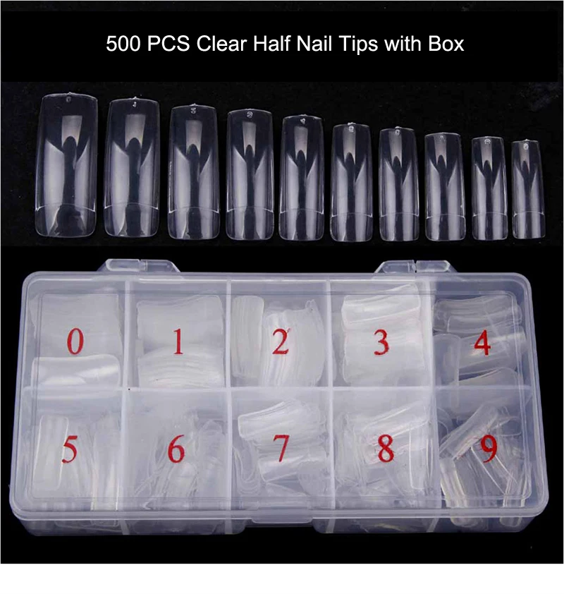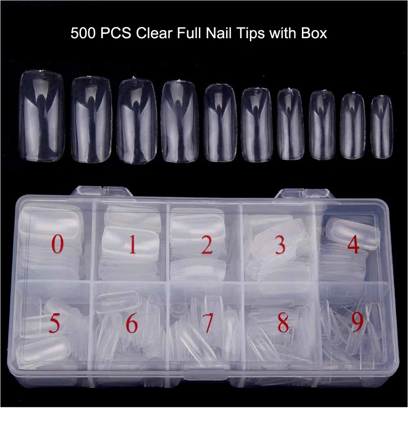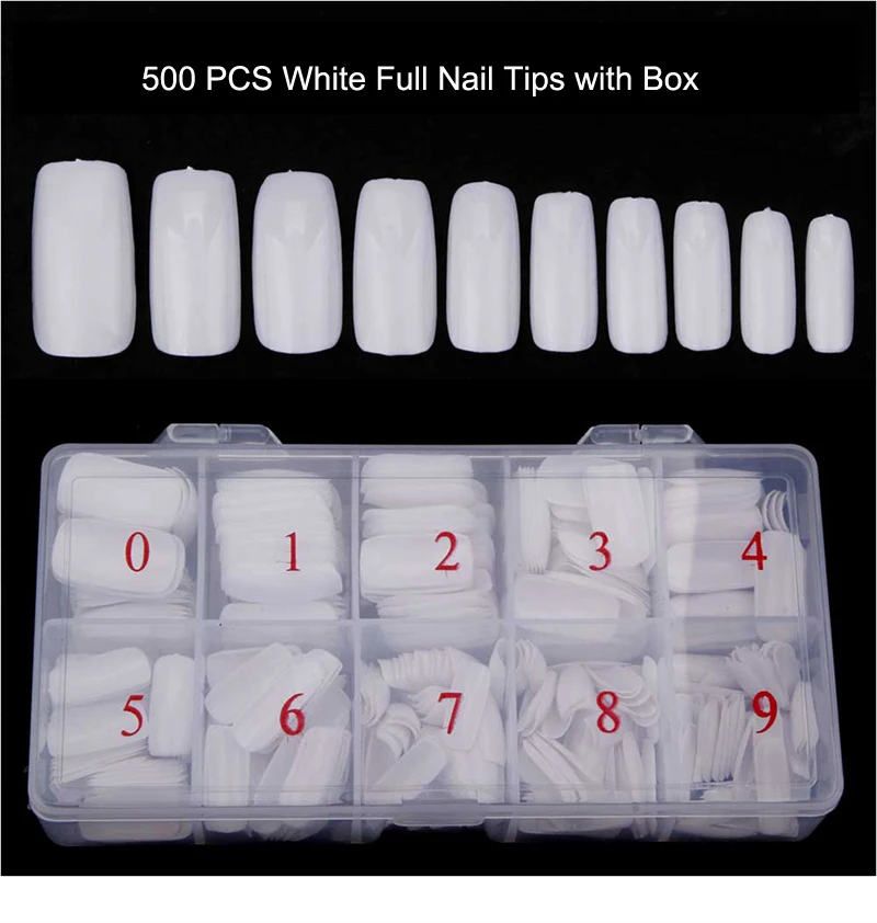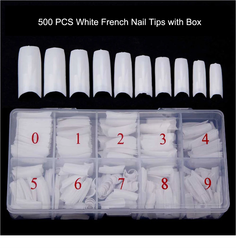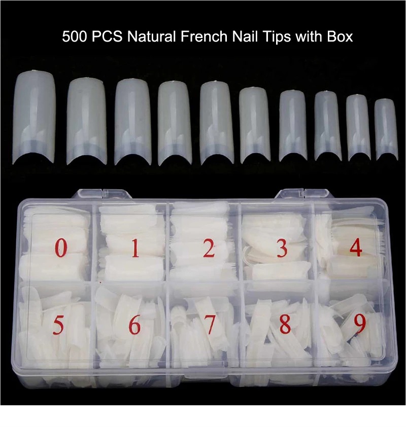 Кол-во: 500 шт./лот (коробка) 10 различных размеров (0-9) для разных пальцев 50 наконечников для каждого размера отдельно упакованы в 10 прозрачных пластиковых мешков для профессионального наращивания ногтей и французского маникюра подходит для наращивания ногтей с украшениями для дизайна ногтей, акрилом, УФ-гелем, стекловолокно и шелк применяют длинную широкую форму, Легче держать и применять легко использовать с помощью клея можно нарезать/разрезать любой стиль, который вам нравится! Клей в комплект не входит. Цвет может немного отличаться из-за определения экрана и факторов фотографирования