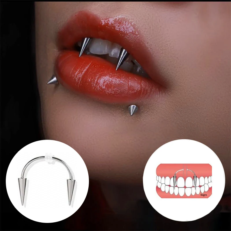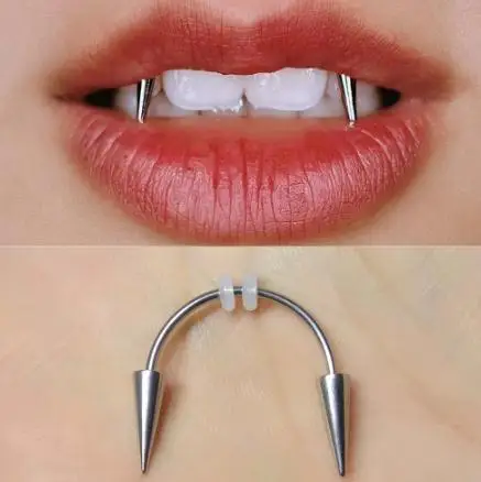 2 шт 16g Спайк губы губная серьга обруч кольцо Зубы вампира хирурги...