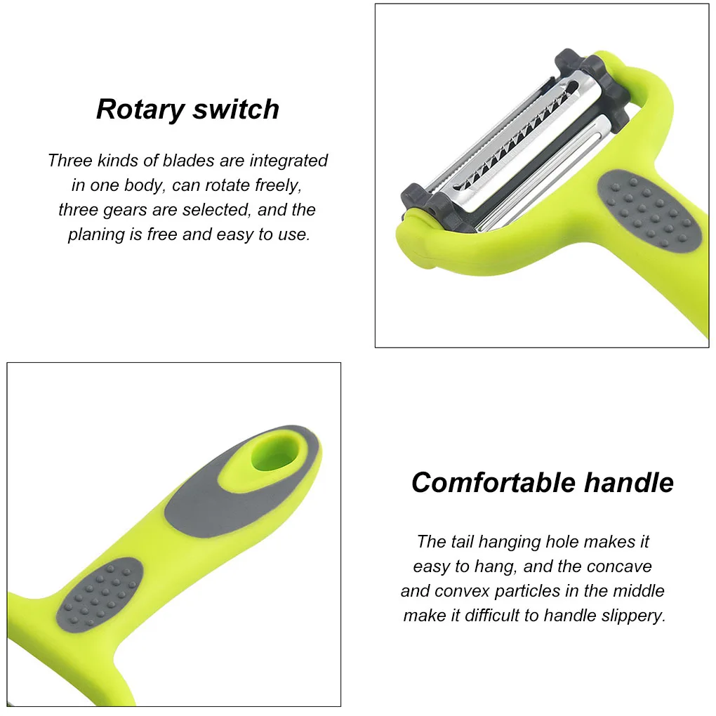 Терка для чистки овощей, 3 в 1, портативная, с ручкой из нержавеющей стали