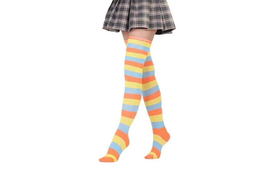 Чулки женские, чулки в японском стиле, в сине-белую полоску, до колена, женские носки для косплея из аниме